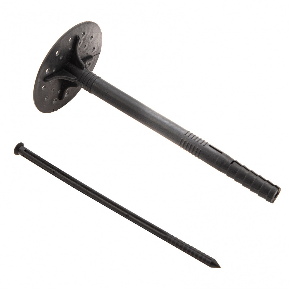 • Надежная фиксация теплоизоляционной плиты — дюбель имеет широкую шляпку диаметром 60 мм.