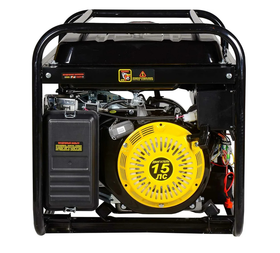 Электрогенератор развивает мощность до 7000 Вт и выдает напряжение 220 В. Для автоматического ввода в работу генератора, например при отключении света, встроен блок автоматики АВР. Оснащен четырехтактным одноцилиндровым бензиновым двигателем мощностью 15 л.с. с воздушным типом охлаждения. Для заправки бака объемом 25 л используется бензин марки АИ-92. Расход составляет 375 г/кВт*ч, что позволяет использовать прибор в течение 8 часов. При установке газового оборудования генератор может работать на пропане или смеси пропан-бутана. Для смазывания частей двигателя используется моторное масло SAE 10W-40 API: SL, SJ, SF. Емкость для смазки вмещает 1.1 л, при недостаточном уровне масла сработает защита и двигатель не запустится.