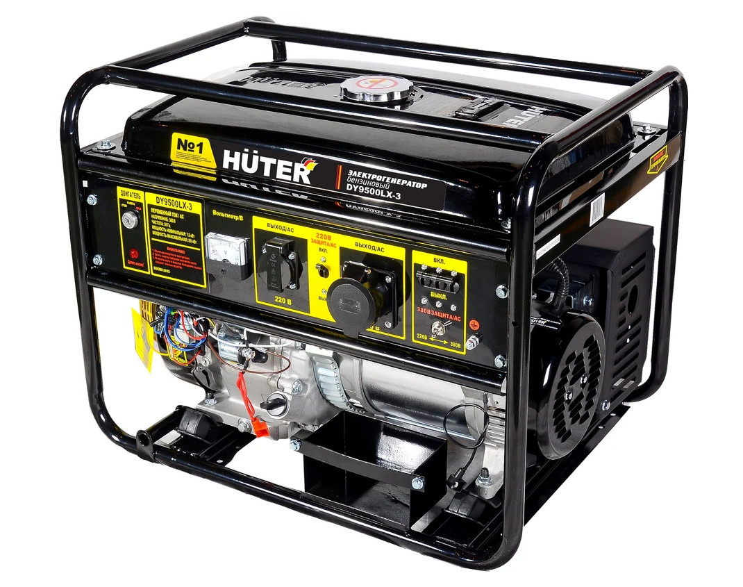Электрогенератор бензинового типа HUTER DY9500LX-3 мощностью 7500/8000 Вт применяется для выработки электроэнергии для приборов при ее отсутствии или временных перебоях. Четырехтактный одноцилиндровый двигатель мощностью 17 л.с. имеет повышенный рабочий ресурс и обеспечивает стабильное напряжение. Запуск осуществляется с помощью ручного и электрического стартеров.