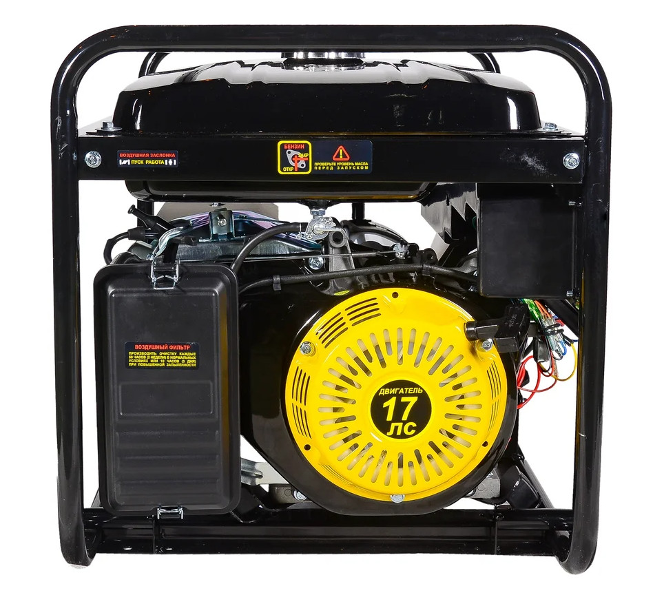 В качестве топлива используется бензин АИ-92. Вместительный бак объемом 25 л при экономичном расходе топлива 375 г/кВт*ч обеспечивает длительный период непрерывной работы. Система автоматической подачи смазки оснащена баком для масла объемом 1,1 л. Защита от отсутствия или недолива смазочного материала повышает срок службы двигателя. Особенности конструкции бензогенератора позволяют использовать газовую топливную систему от баллонов с пропаном и пропан-бутаном. Воздушное охлаждение двигателя, защита от перегрева и коротких замыканий предотвращают выход агрегата из строя.