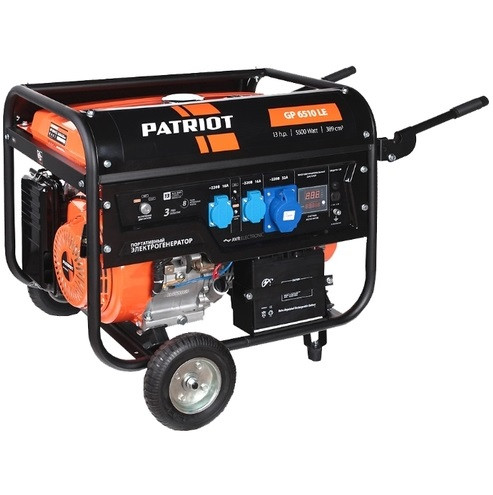Бензиновый генератор PATRIOT GP 6510LE 474101570 оснащается двигателем с верхним расположением клапанов для увеличения срока службы изделия. Также модель включает в себя комплект для транспортировки: пару рукояток и колеса на раме. Изделие подойдет для аварийного питания небольших потребителей уровня сварочных аппаратов, станков или электроинструмента. Имеется три выхода на 220 В и один выход на 12 В для подзарядки аккумуляторов. Передняя панель дополнительно усилена, что снижает риск механических повреждений.