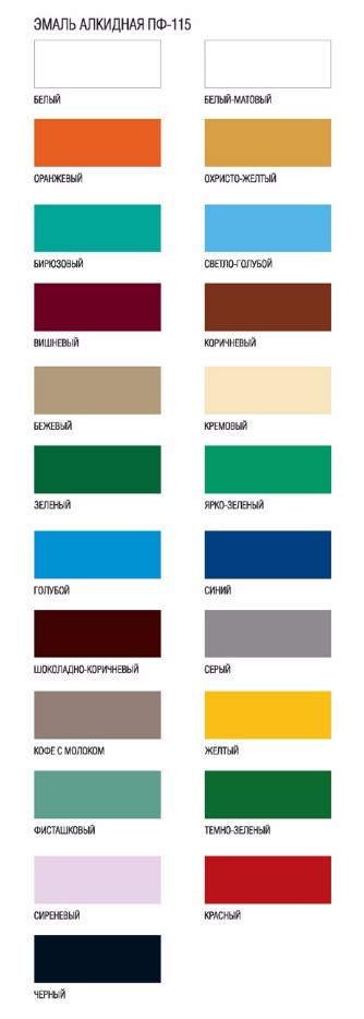 Цвет: Глянцевые эмали: белый, бежевый, кремовый, кофе с молоком, желтый, оранжевый, зеленый, ярко-зеленый, темно-зеленый, бирюзовый, светло-голубой, голубой, синий, сиреневый, красный, вишневый, коричневый, шоколадно-коричневый, серый, черный. Матовые эмали: белый.