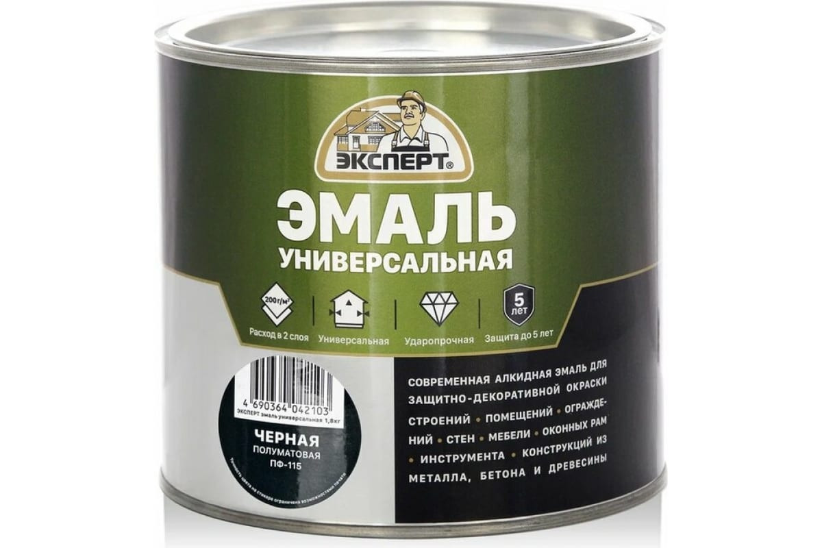 Эмаль ПФ-115 универсальная алкидная ЭКСПЕРТ полуматовая черная 1,8кг
