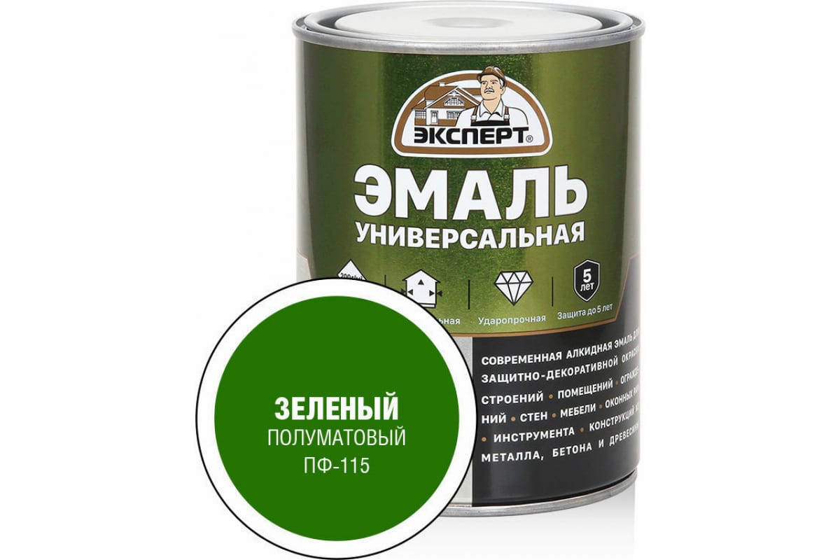 Эмаль ПФ-115 универсальная алкидная ЭКСПЕРТ полуматовая зеленая 0,8кг