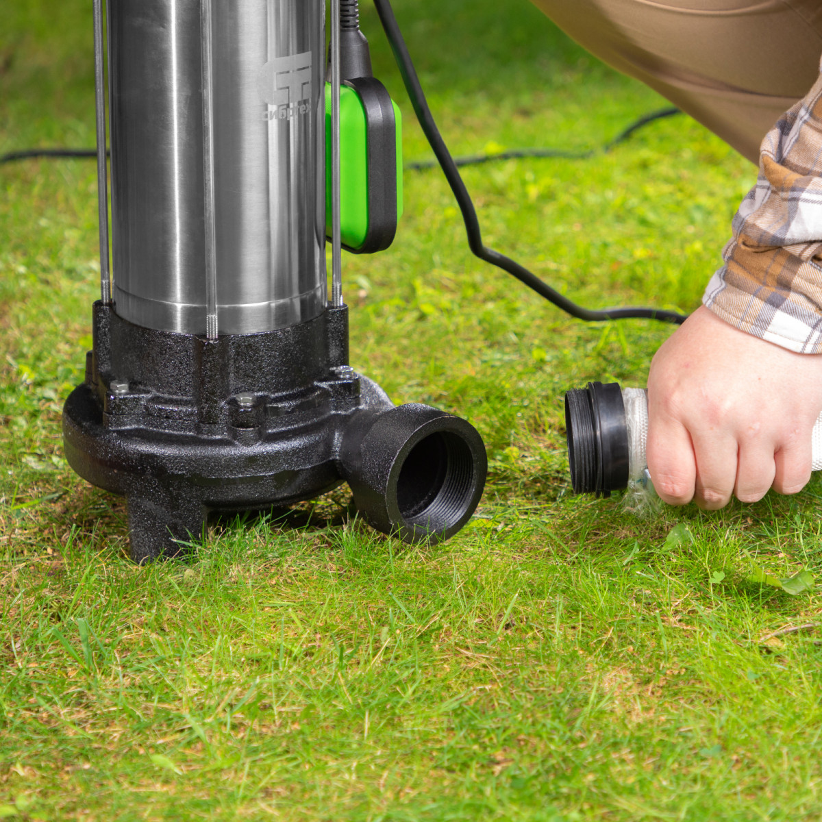 Фекальный насос Сибртех СФН1100-Н 99805 с ножом, мощностью 1500 Вт и производительностью до 25000 л/ч, обеспечивает напор 19 м и применяется для работы как с грязной, так и с чистой водой. Его можно использовать для откачки содержимого выгребных ям, емкостей, водоемов, канав, стоков и траншей или осушения затапливаемых помещений. Нож измельчает крупные частицы в воде, поэтому насос подходит для организации системы канализации на даче. Также он способен работать со стоками, в которых температура жидкости не превышает 35 градусов. Создаваемого напора достаточно для подачи воды в системы орошения с несколькими точками водоразбора. Диаметр штуцера для подключения шланга составляет 2 дюйма.