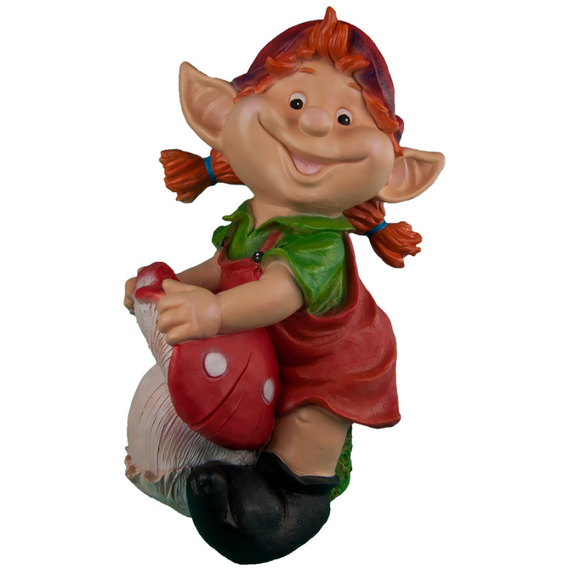 Фигура садовая Гномик девочка тащит гриб