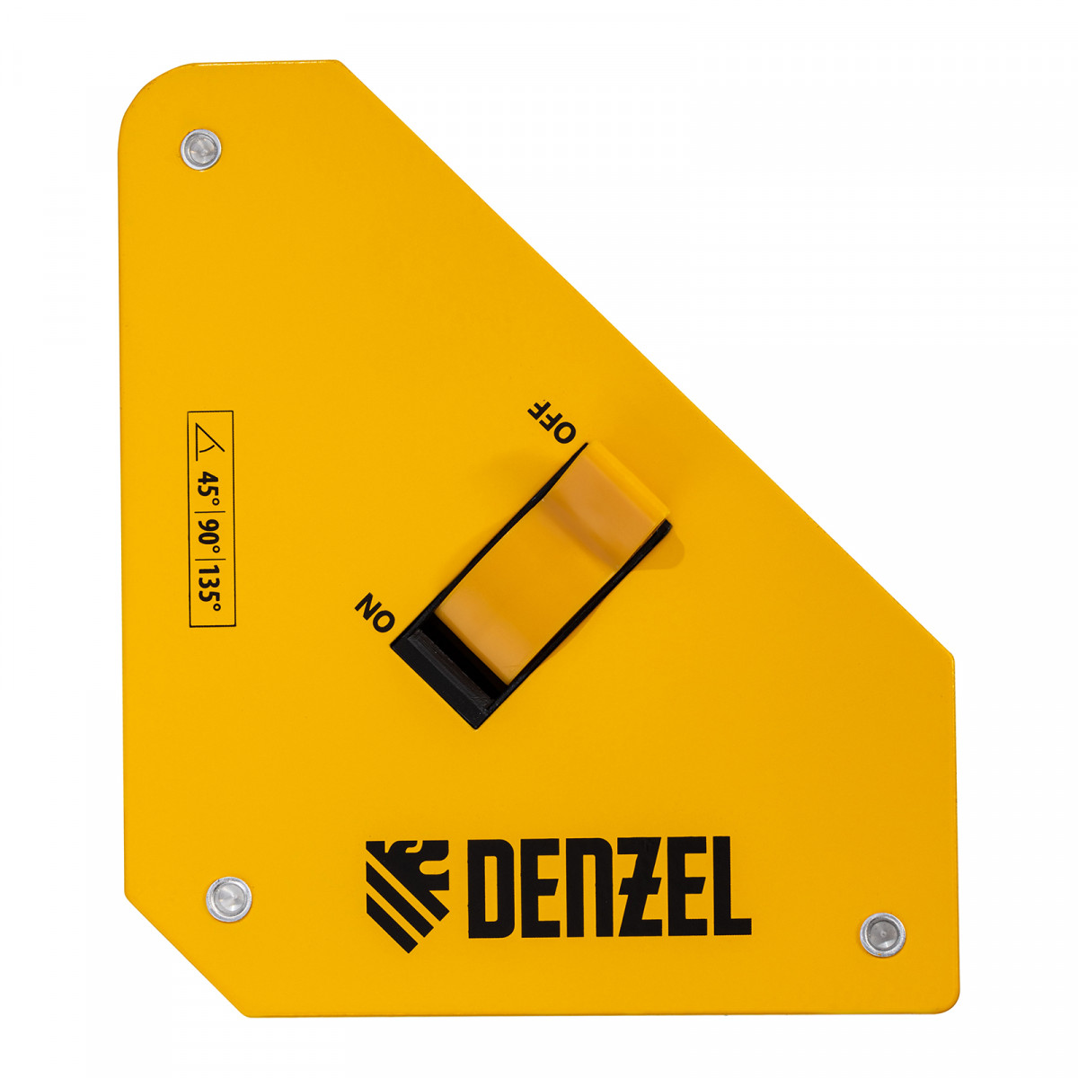 Магнитный фиксатор отключаемый Denzel способен удерживать металлические предметы под углом 45° и 90°, облегчая установку и снятие.