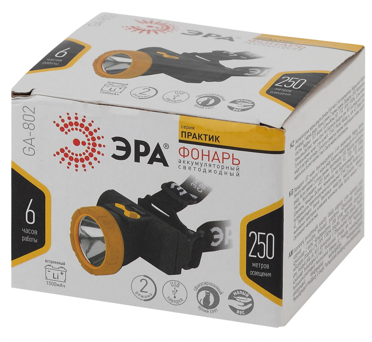 Фонарь налобный аккумуляторный ЭРА GA-802