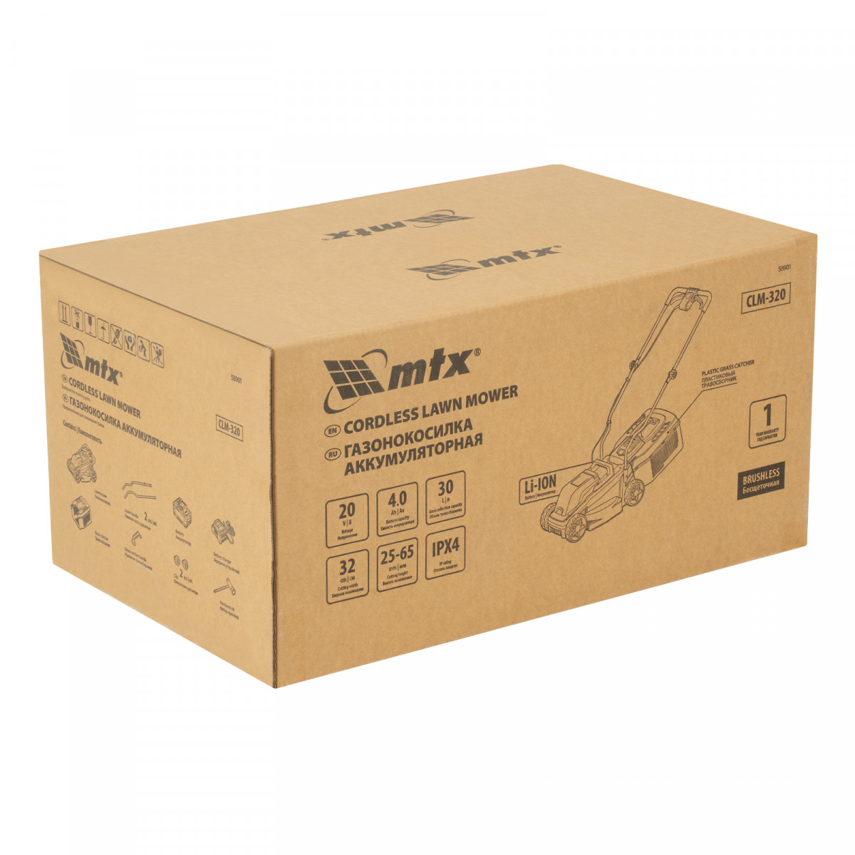 Газонокосилка аккумуляторная бесщеточная CLM-320, 320 мм, травосб. 30 л, Li-Ion, 20 В MTX