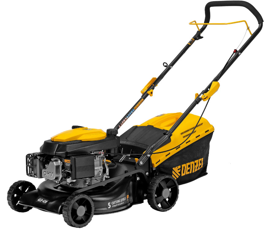 - Бензиновая газонокосилка с объемом двигателя 146 см куб., травосборником на 40 л, с шириной прохода 42 см, идеально подходит для благоустройства дачных территорий, огородов и ровных земельных участков.