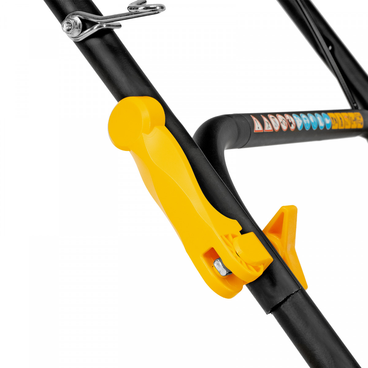 - Простая регулировка высоты скашивания — достаточно установить рычаг в нужное положение.