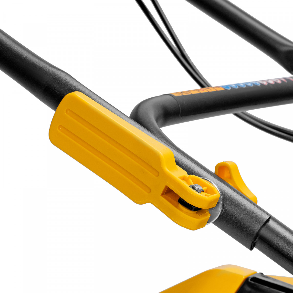 • Удобная система складывания — эксцентриковые фиксаторы быстро сжимаются и разжимаются, что позволяет за несколько минут сложить рукоятку и разместить косилку в нужном месте.