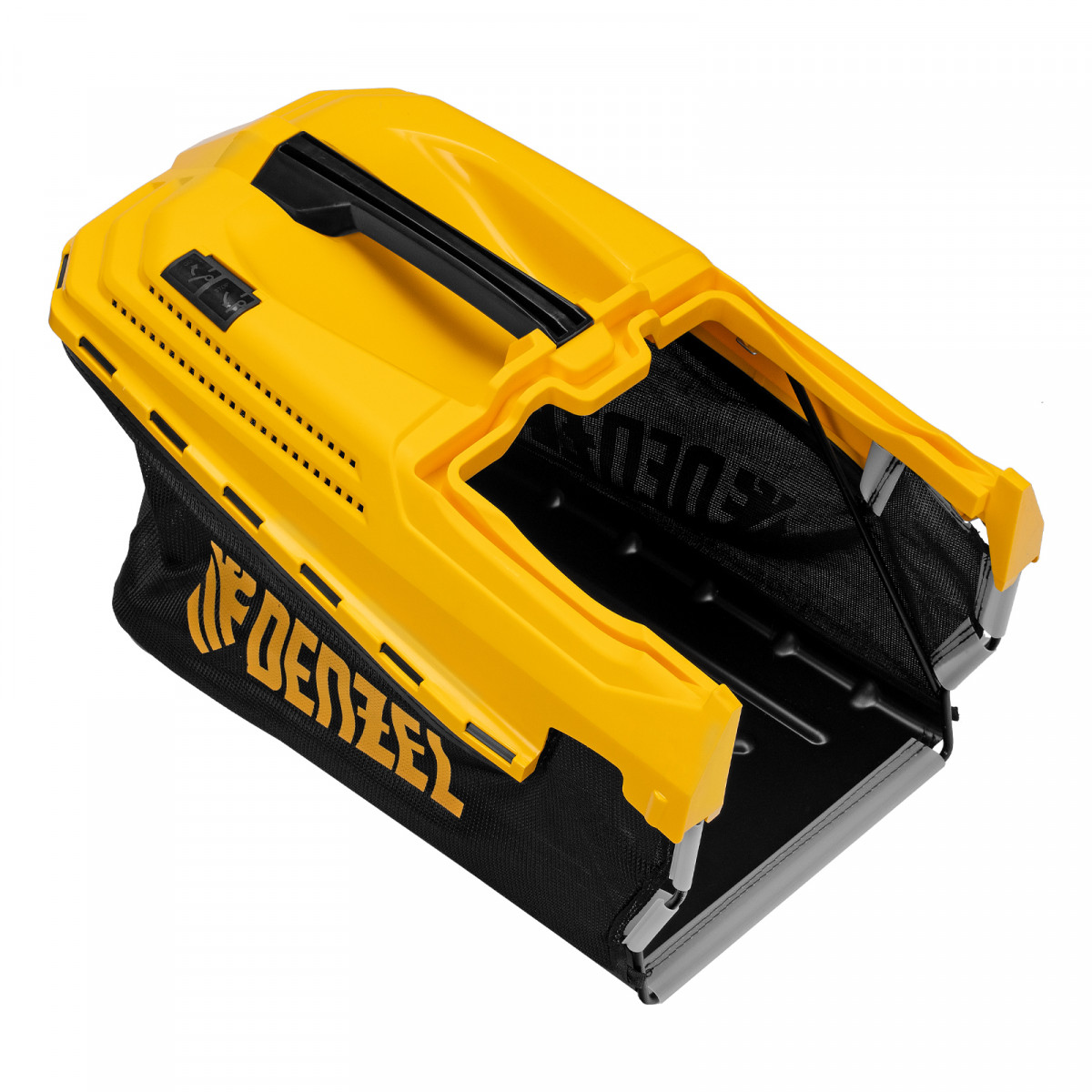 • Комбинированный травосборник — сочетание прочного пластика и легкой ткани значительно увеличивает надежность контейнера, облегчает его очистку и исключает гниение собранной травы.