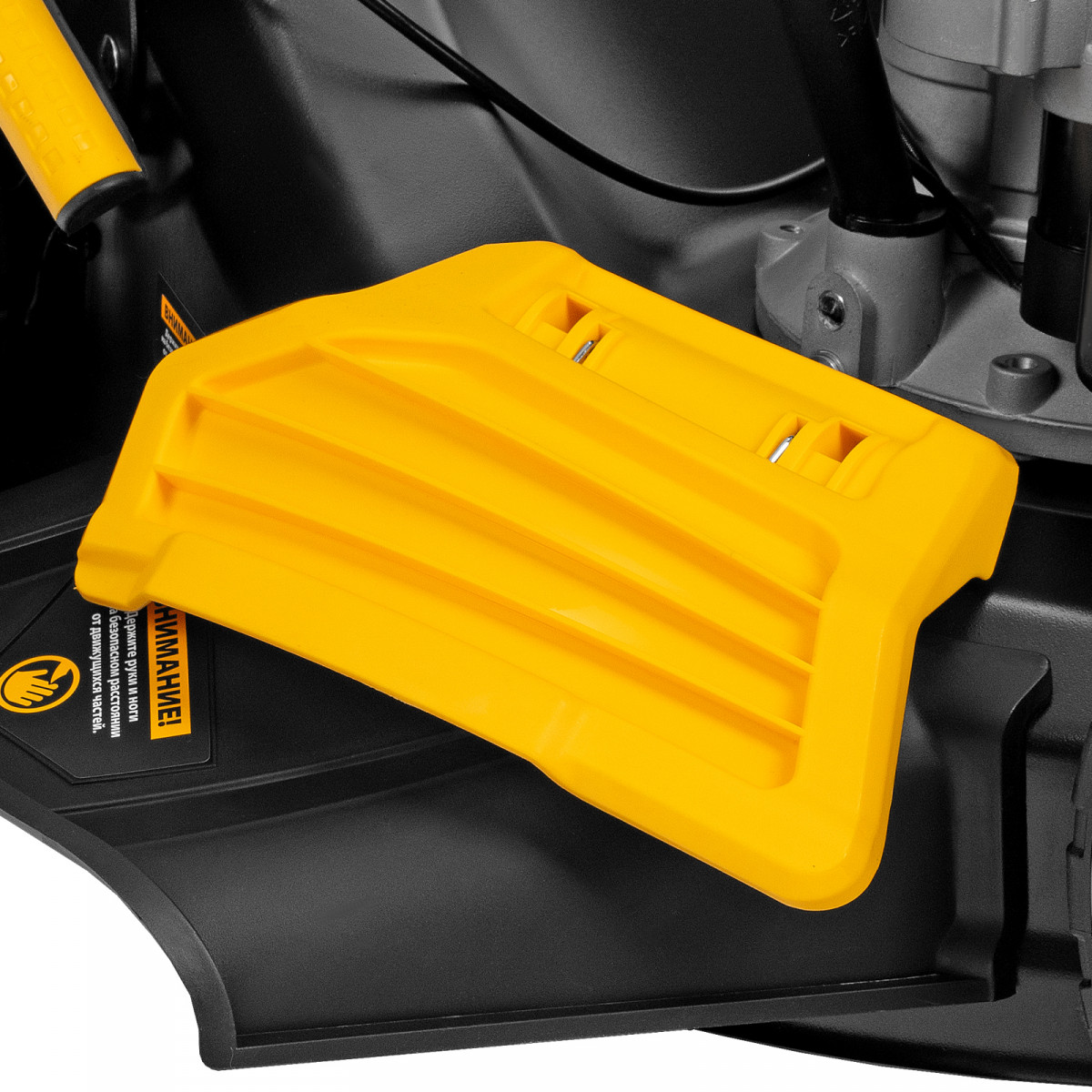 • Оптимизированная геометрия деки — форма корпуса обеспечивает максимальную эффективность сбора травы.