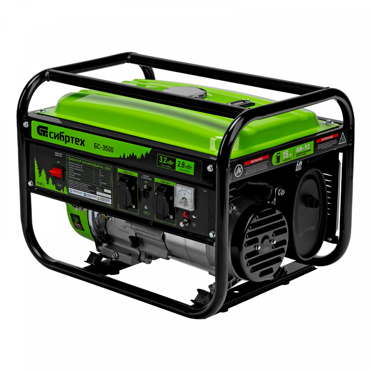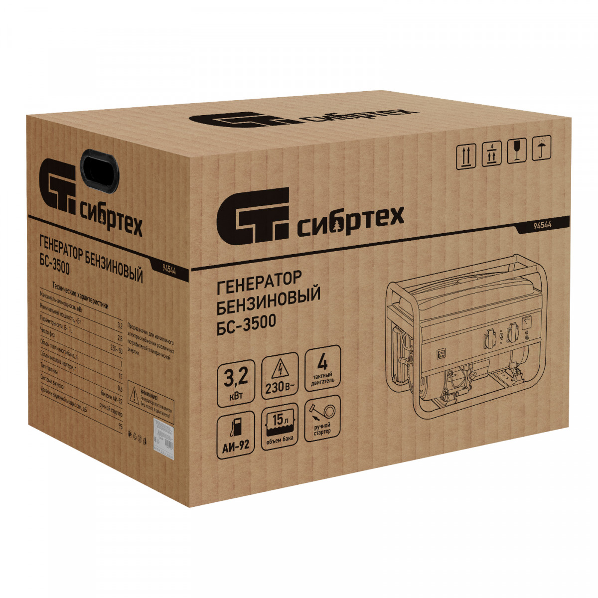 Генератор бензиновый БС-3500, 3.2 кВт, 230В, четырехтактный, 15 л, ручной стартер Сибртех