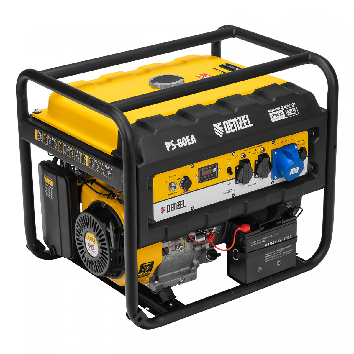 Генератор бензиновый PS 80 EA, 8.0 кВт, 230 В, 25 л, коннектор автоматики, электростартер Denzel