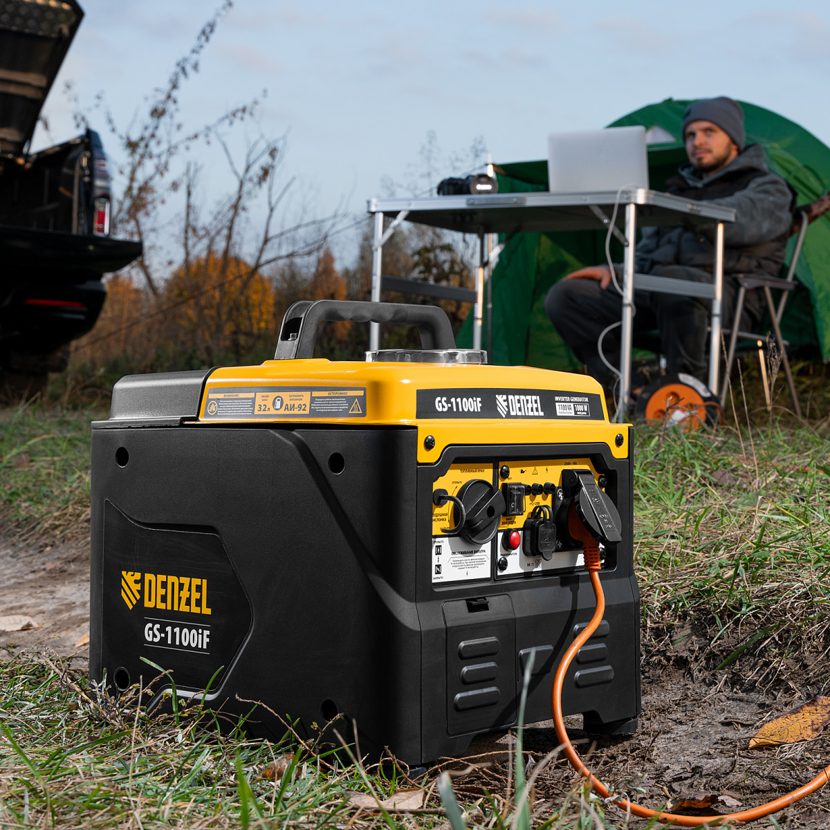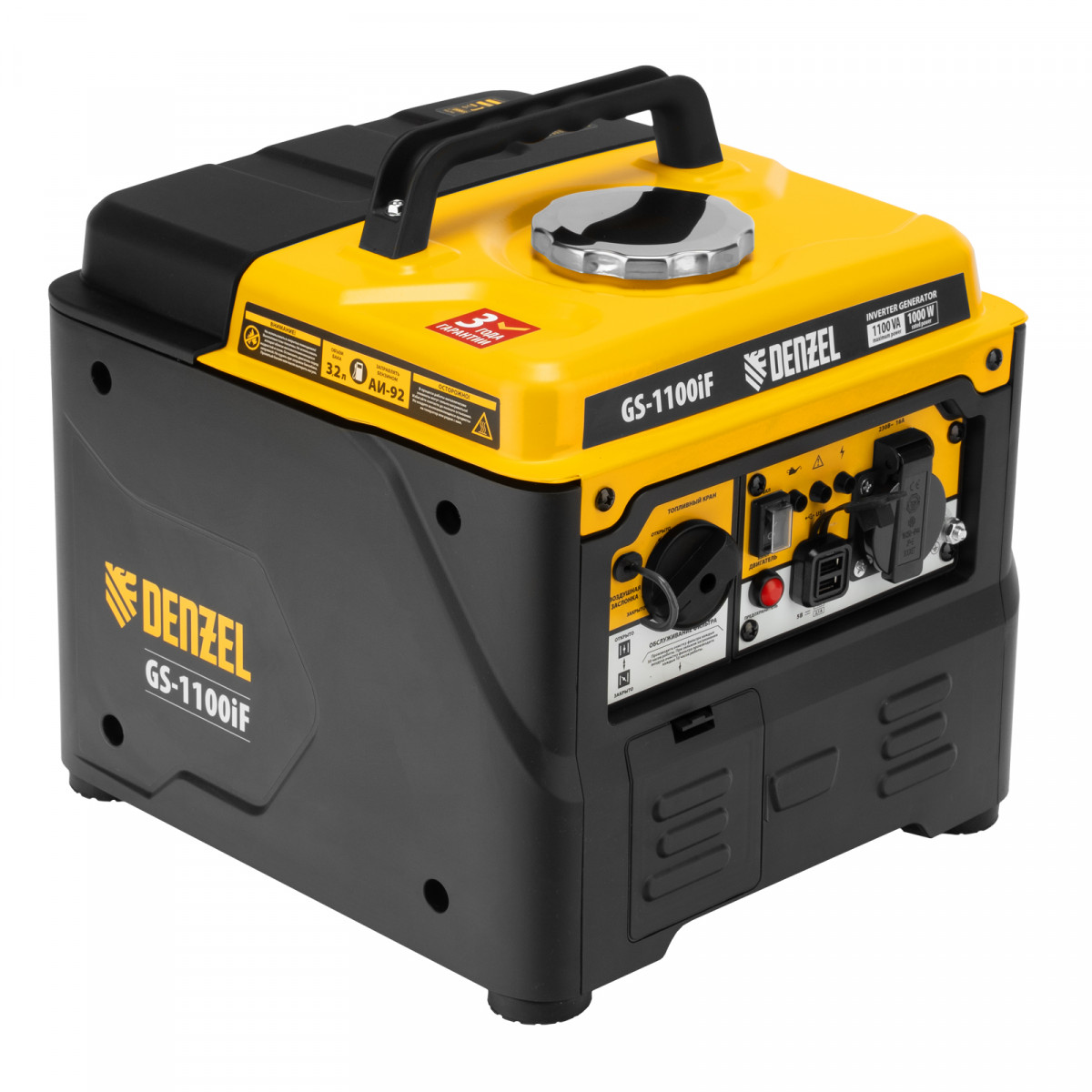 Генератор инверторный GS-1100iF, 1,1 кВт, 230 В, ручной старт DENZEL