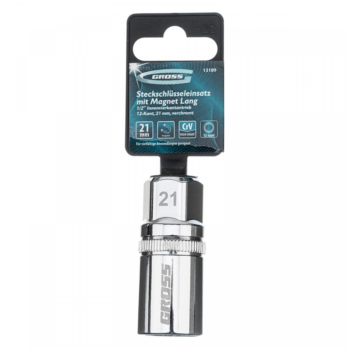Головка торцевая свечная, магнитная, двенадцатигранная, 21 мм, под квадрат 1/2 Gross