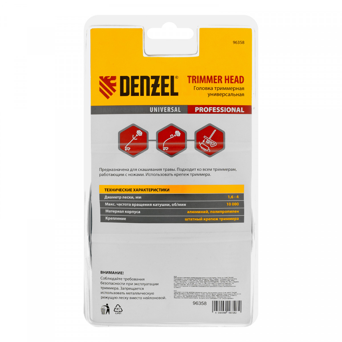 Головка триммерная универсальная, алюминиевый корпус, леска до 4 мм Denzel