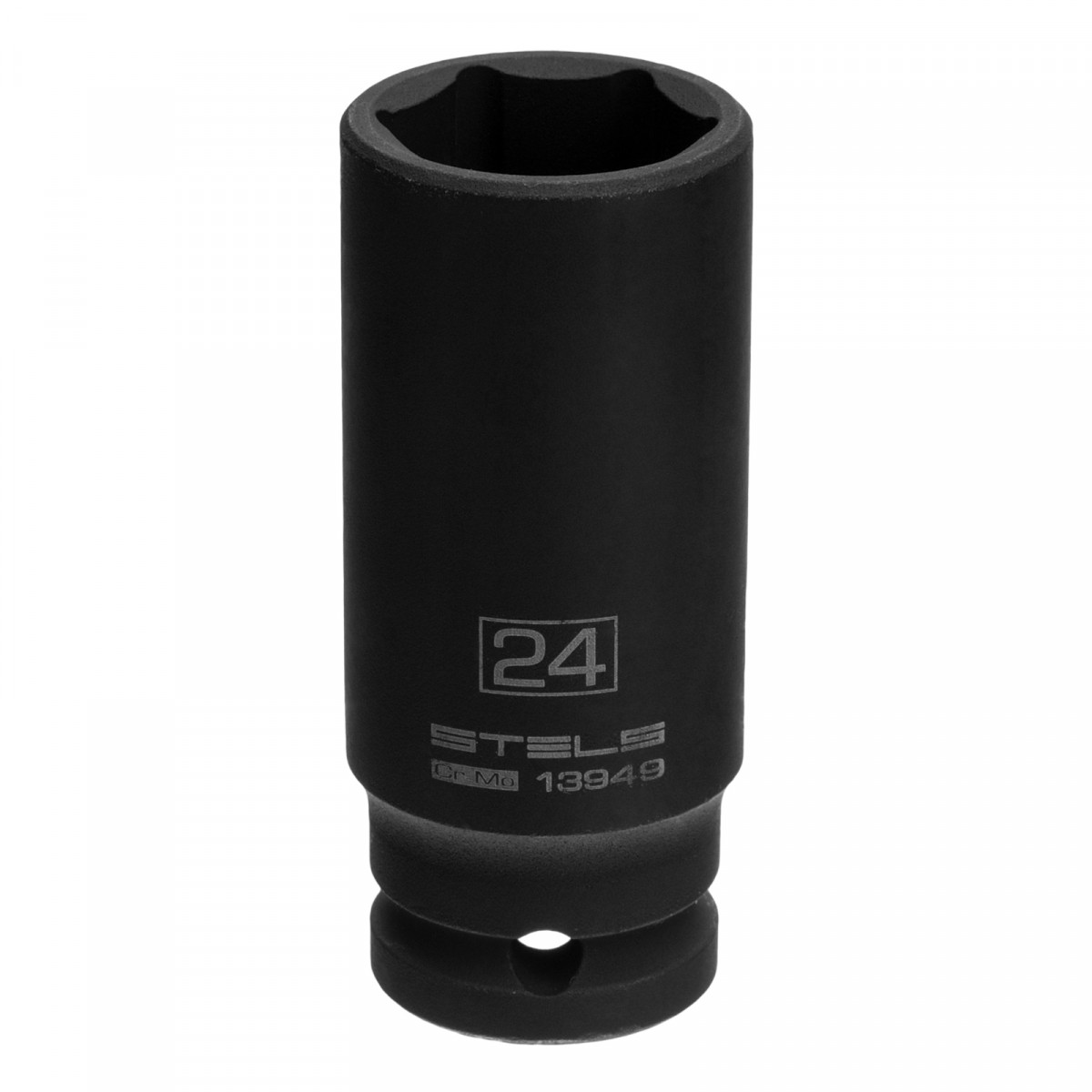 Головка ударная удлиненная шестигранная, 24 мм, 1/2, CrMo Stels
