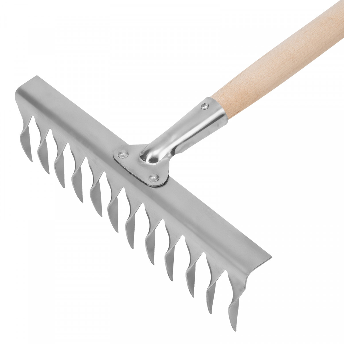 Грабли, нержавеющая сталь, 290 х 1300 мм, 12 витых зубьев, деревянный черенок, Сибртех