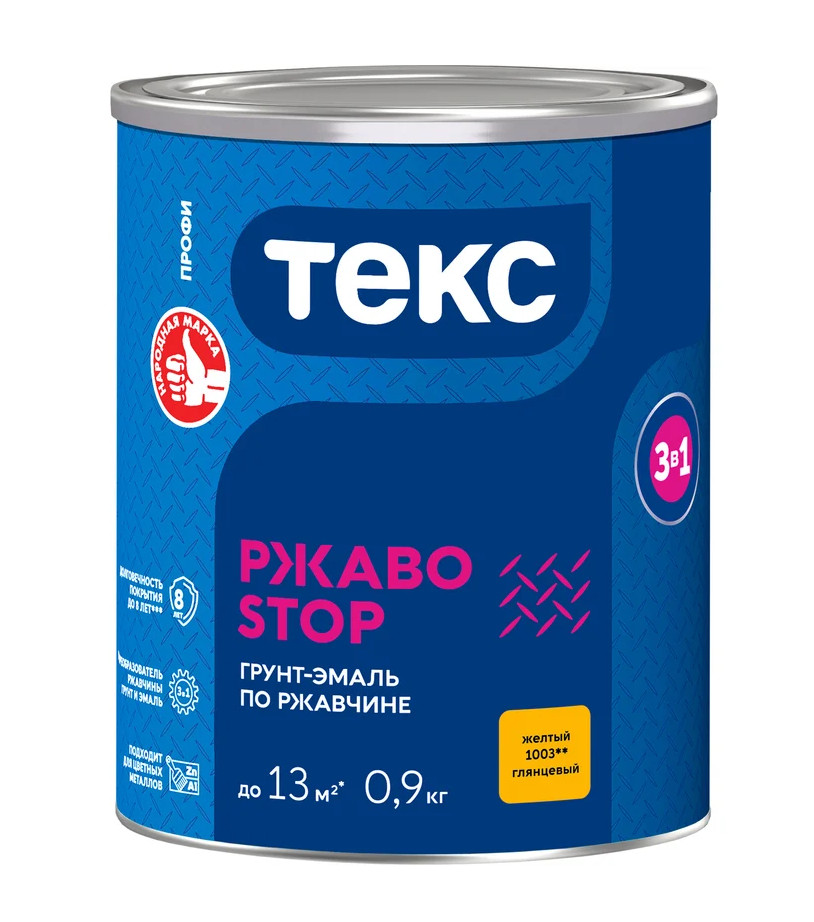 Грунт-эмаль 3в1 РЖАВОSTOP ПРОФИ желтая глянцевая 0,9кг ТЕКС