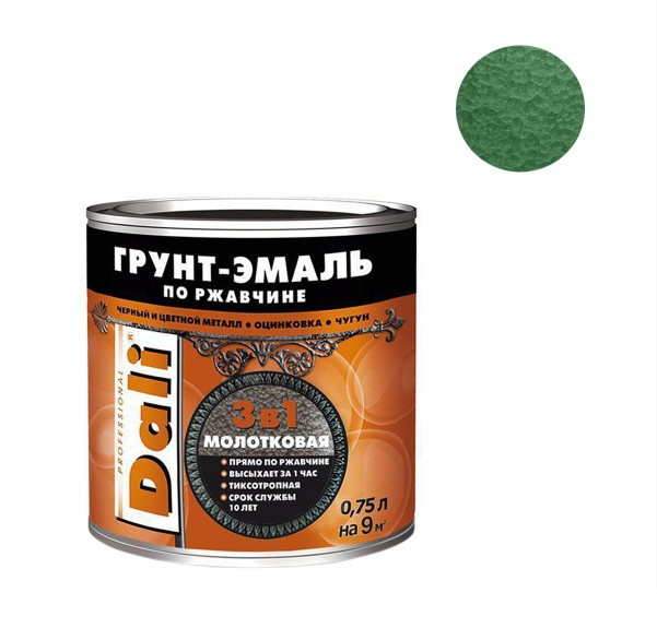 Грунт-эмаль молотковая по ржавчине 3в1 зеленая DALI 0,75л