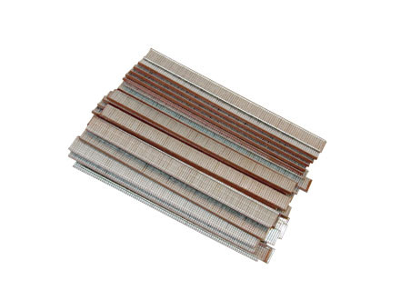 Изготовлены из углеродистой стали. Имеют никелированное покрытие. Предназначены для крепления материала к поверхностям с помощью пневматического нейлера.