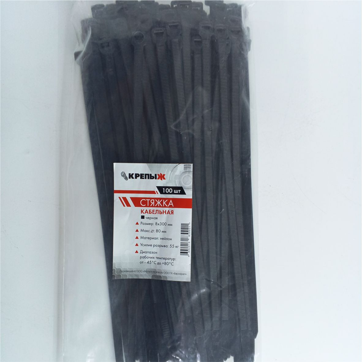 Хомут нейлоновый 8*300 мм черный КРЕПЫЖ