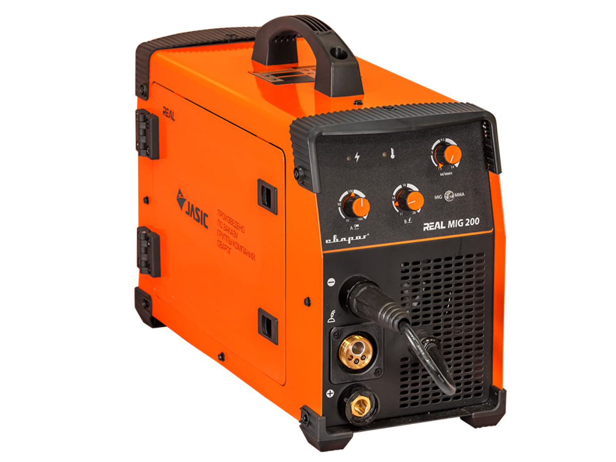 Аппарат серии REAL MIG 200 (N24002) предназначен для полуавтоматической сварки в среде защитных газов (MIG/MAG), сварки порошковой проволокой (FCAW), а также ручной дуговой сварки покрытым электродом (ММА).