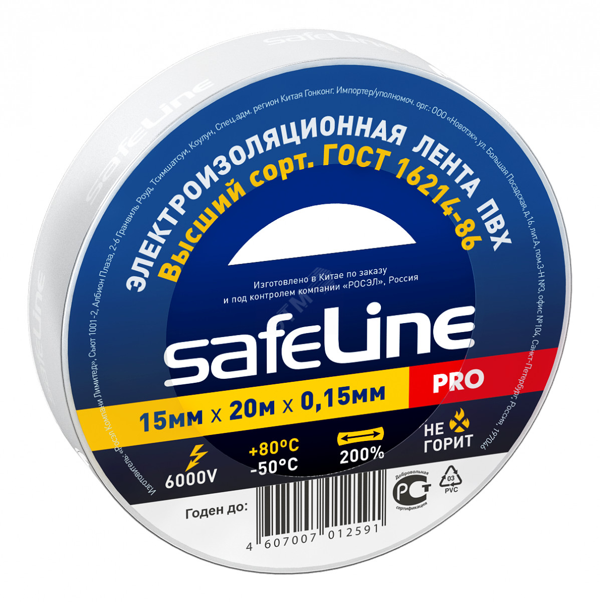 Изолента 15 мм/20 м белая SafeLine
