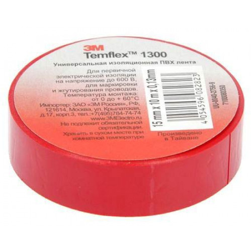 Изолента ПВХ TEMFLEX красная 10м*15мм