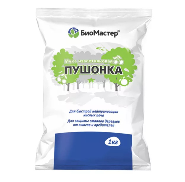 Ценное известковое удобрение, пролонгированного действия. Периодичность внесения – один раз в 3 – 4 года. Улучшает структуру и плодородие почвы. Повышает эффективность вносимых органических и минеральных удобрений. Способствует улучшению качества урожая и его сохранности. Эффективное средство борьбы с насекомыми.