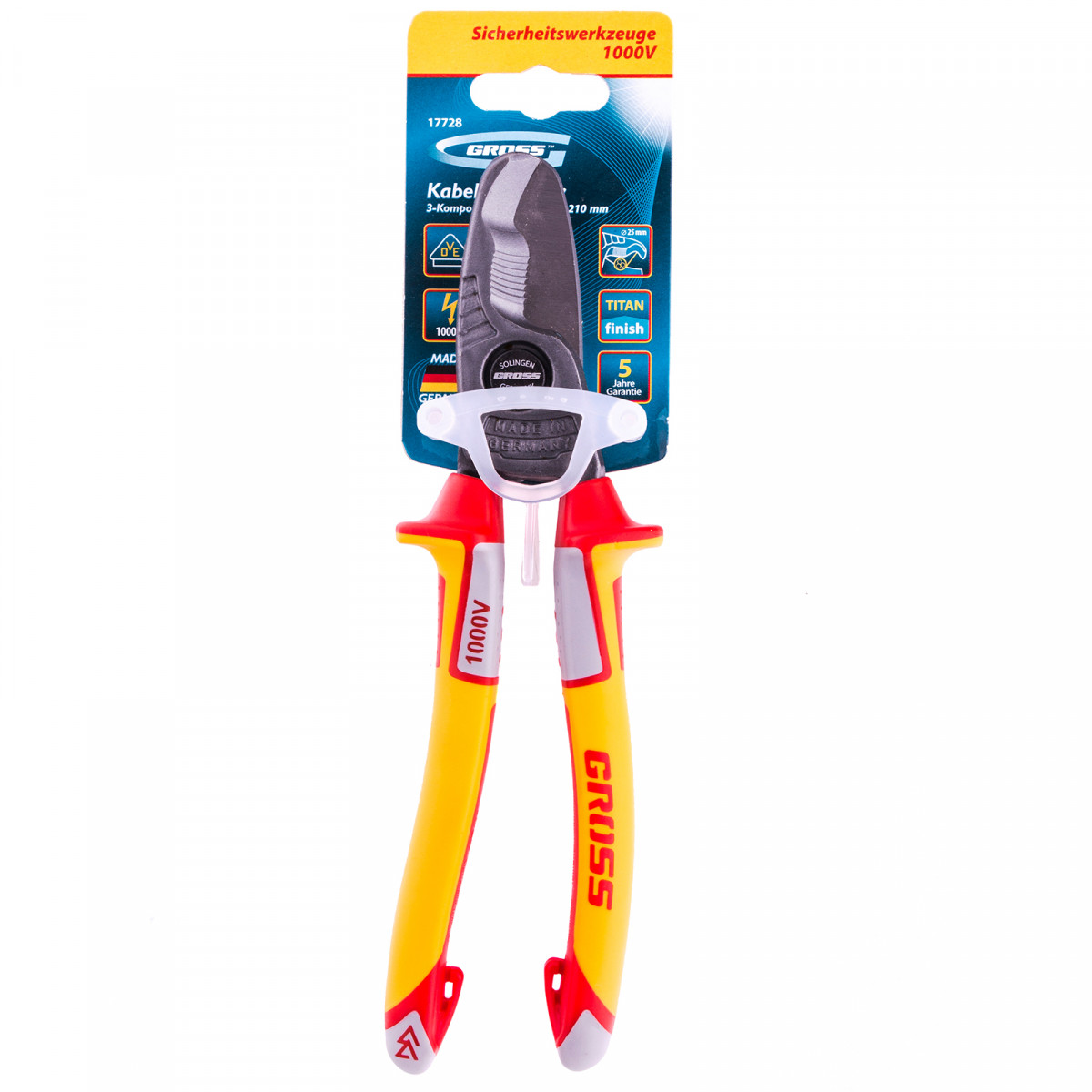 Кабелерез, диэлектрические рукоятки до 1000 В, трехкомпонентные рукоятки, 210 мм Gross