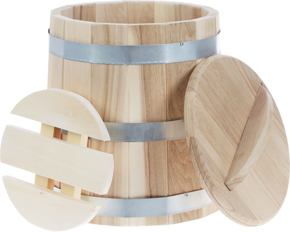 Кадка из дуба БАННЫЕ ШТУЧКИ 15л с крышкой и гнётом