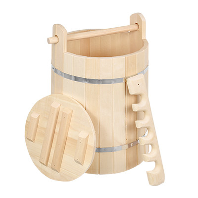 Кадка с крышкой выполнена из брусков липы, стянутых двумя металлическими обручами. Она прекрасно подойдет для замачивания веника или других банных процедур, а также для хранения солений. Кадка является одной из тех приятных мелочей, без которых не обойтись при принятии банных процедур.Аксессуары для бани и сауны - это те приятные мелочи, которые приносят радость и создают комфорт.