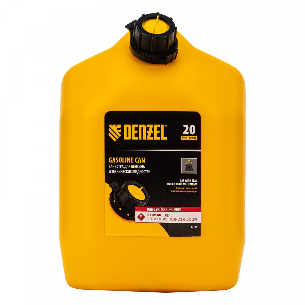 Премиум-канистра DENZEL 53131 объемом 20 л используется для хранения и транспортировки ГСМ. Ее удобно брать в дорогу, а также можно поставить на даче, или в гараже. Канистра пригодится для заправки автомобиля и бензотехники.