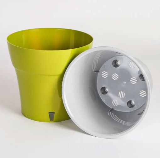 Внутренняя емкость оснащена дренажными отверстиями, которые обеспечивают циркуляцию воздуха и обеспечивают эффективное увлажнение корней.