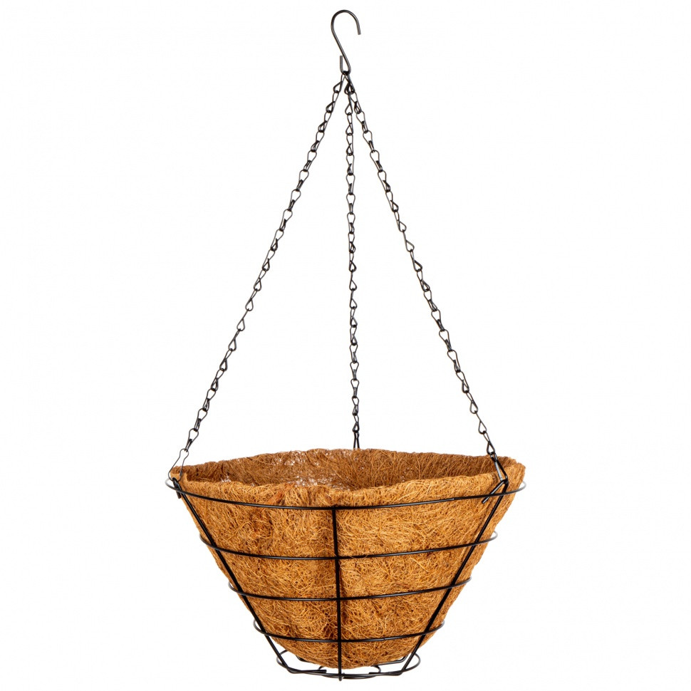 Подвесное кашпо Palisad 69022 диаметром 35 см, с вкладышем из коковиты в форме конуса, используется для посадки ампельных и вьющихся растений. Экологически чистая коковита отлично удерживает влагу и обеспечивает аэрацию корневой системы, что способствует правильному росту растений. Кашпо подходит для подвешивания как внутри, так и снаружи помещения, станет прекрасным украшением дома или сада.