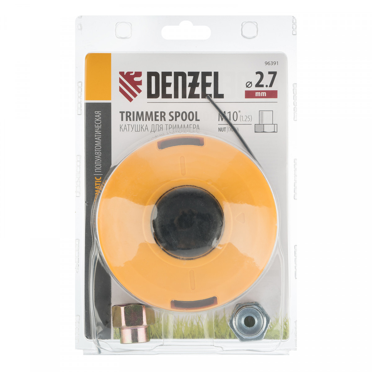 Полуавтоматическая триммерная катушка Denzel 96391 имеет посадочный размер M10 с левой резьбой 1,25 мм, а также комплектуется адаптерами M10 и M8 с шагом резьбы 1,0 и 1,25 соответственно. Устанавливается на вал электрического или бензинового триммера и используется для ухода за озелененной территорией. В катушку можно заправлять леску диаметром до 2,7 мм, что позволяет как подравнивать газонную траву, так и скашивать крупностеблевые растения и сорняки.