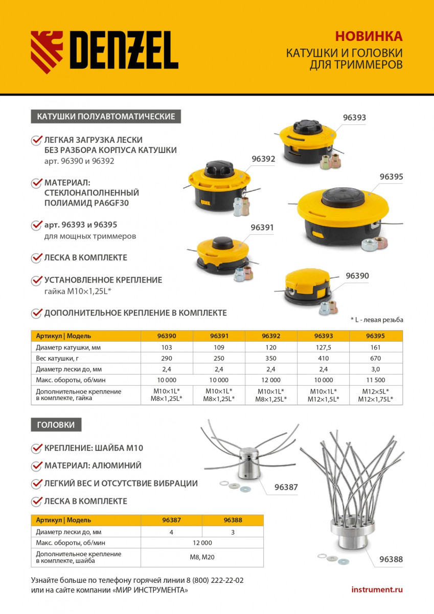 Катушка триммер. полуавтомат , гайка М10,М10,М8, лев.,шаг 1,0 1,25мм Denzel