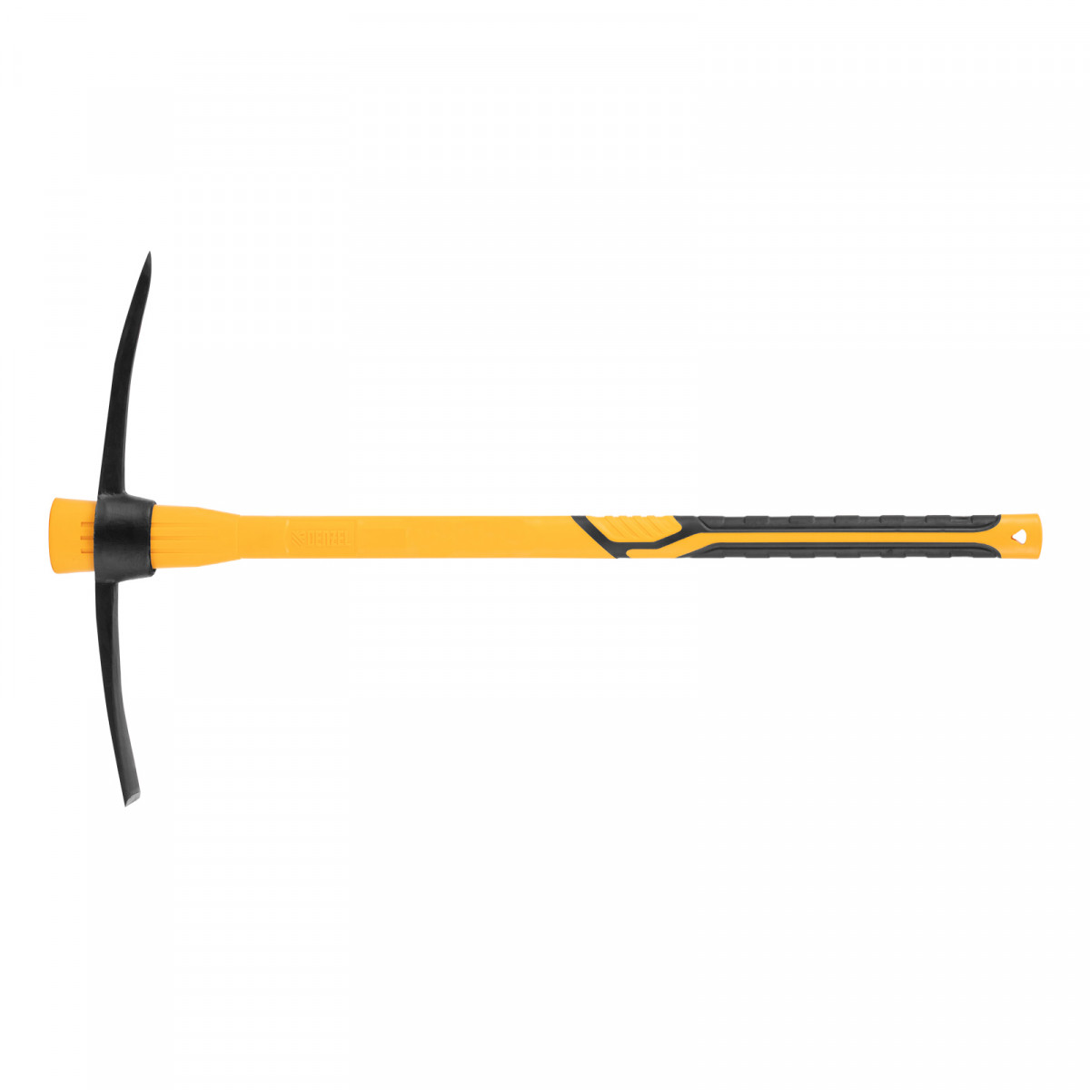 Кирка Denzel 21834 длиной 900 мм, с узкой рабочей частью, головой весом 1500 г и фибергласовой обрезиненной рукояткой, предназначена для работы по камню, рыхления каменистого, пересохшего земляного и глиняного грунта. Может использоваться для разрушения старой кирпичной кладки и колки льда. Инструмент будет полезен на строительной площадке и дачном участке.