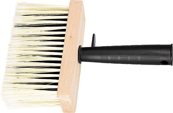 Макловица искусственная щетина, деревянный корпус. Для обработки поверхностей, 150*70 мм. Используется для выполнения работ по размывке потолков, грунтовке и побелке больших поверхностей. Ворс кисти изготовлен из двухцветной (черной и белой) искусственной щетины. Инструмент имеет деревянный корпус и оснащен пластмассовой рукояткой.