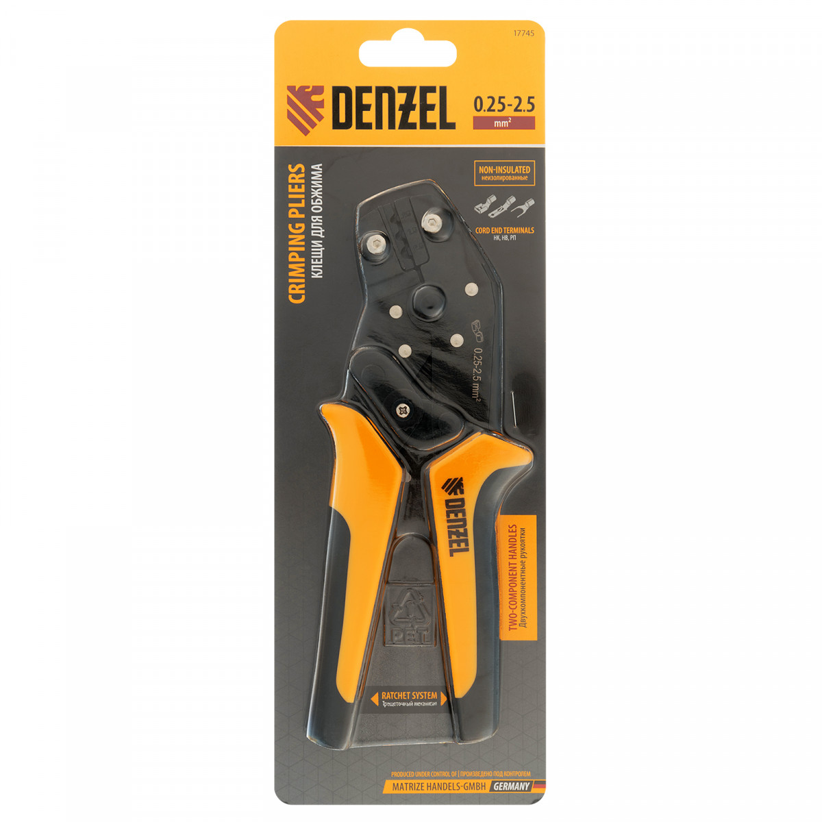 Клещи для обжима неизолированных наконечников НК и НВ, разъемов РП, 0,25 - 2,5 мм2 Denzel