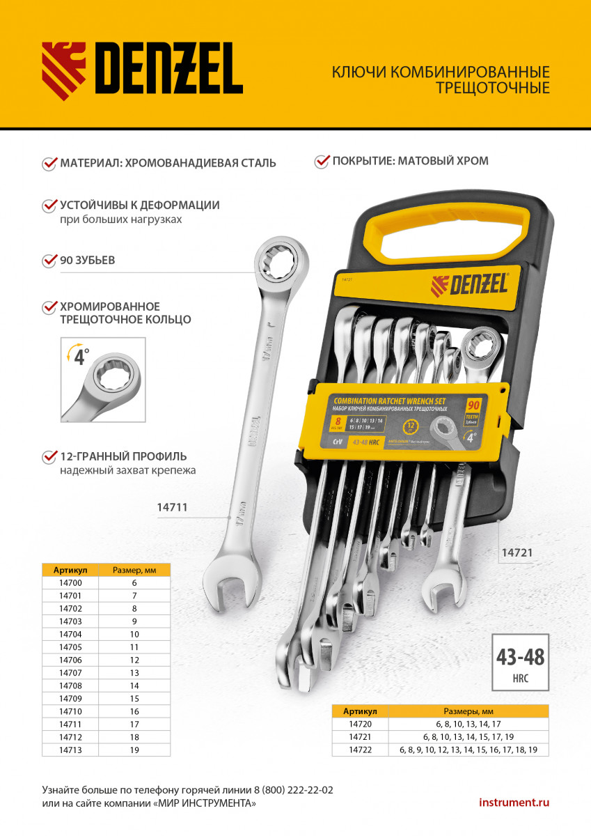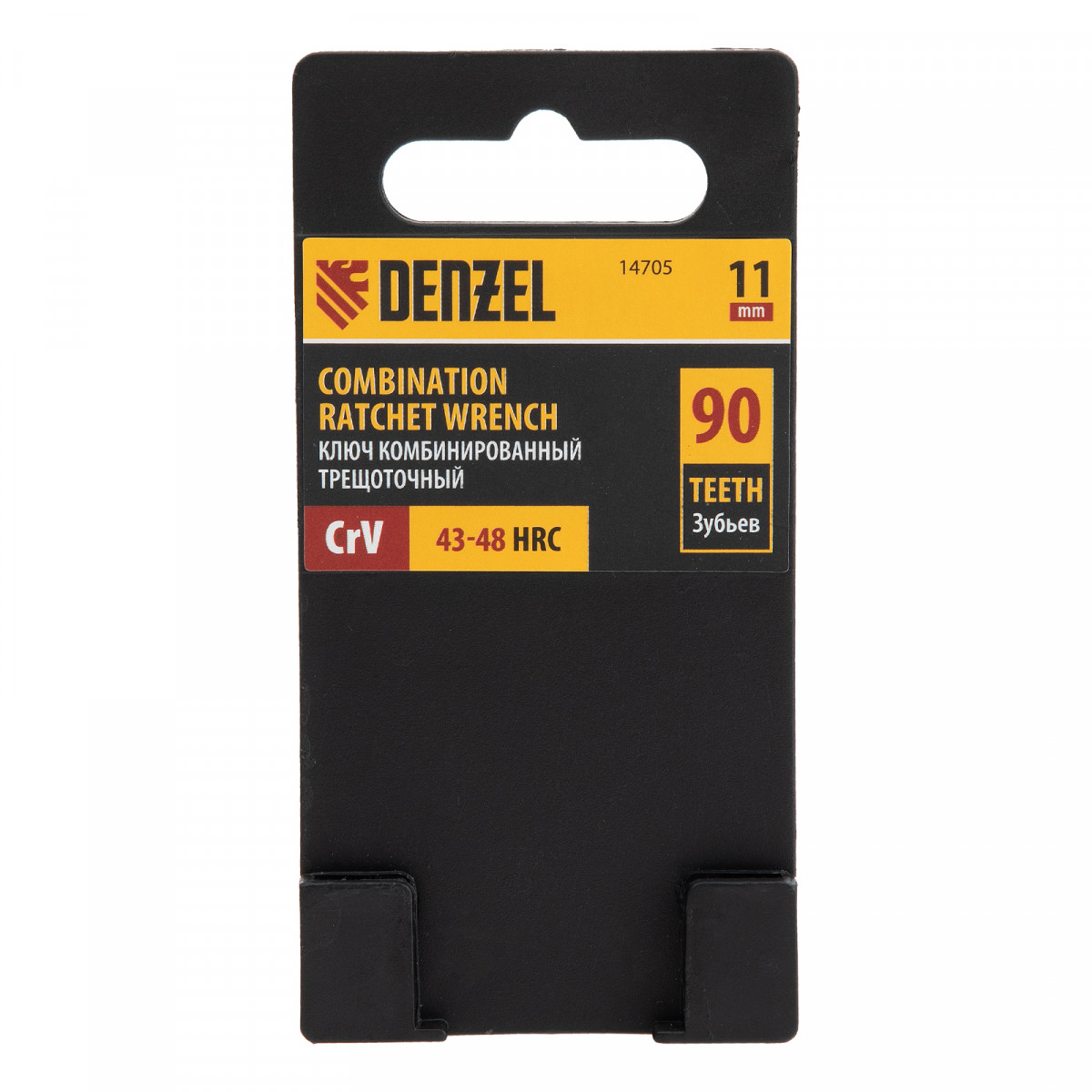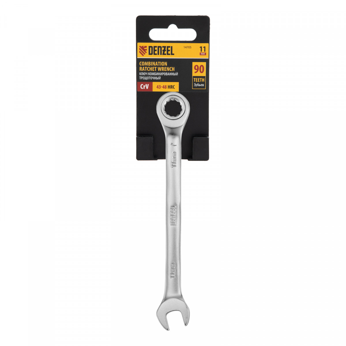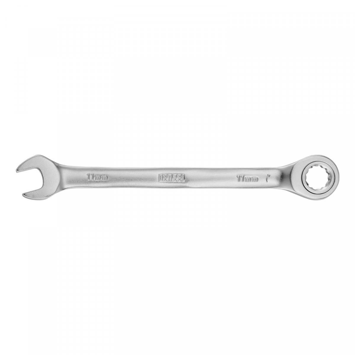Ключ комбинированный трещоточный, 11 мм, CrV, матовый хром Denzel