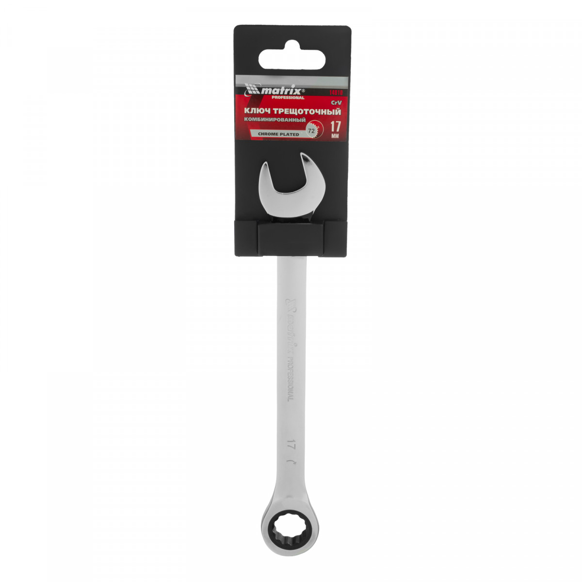 Ключ комбинированный трещоточный, 17 мм, CrV, зеркальный хром Matrix Professional