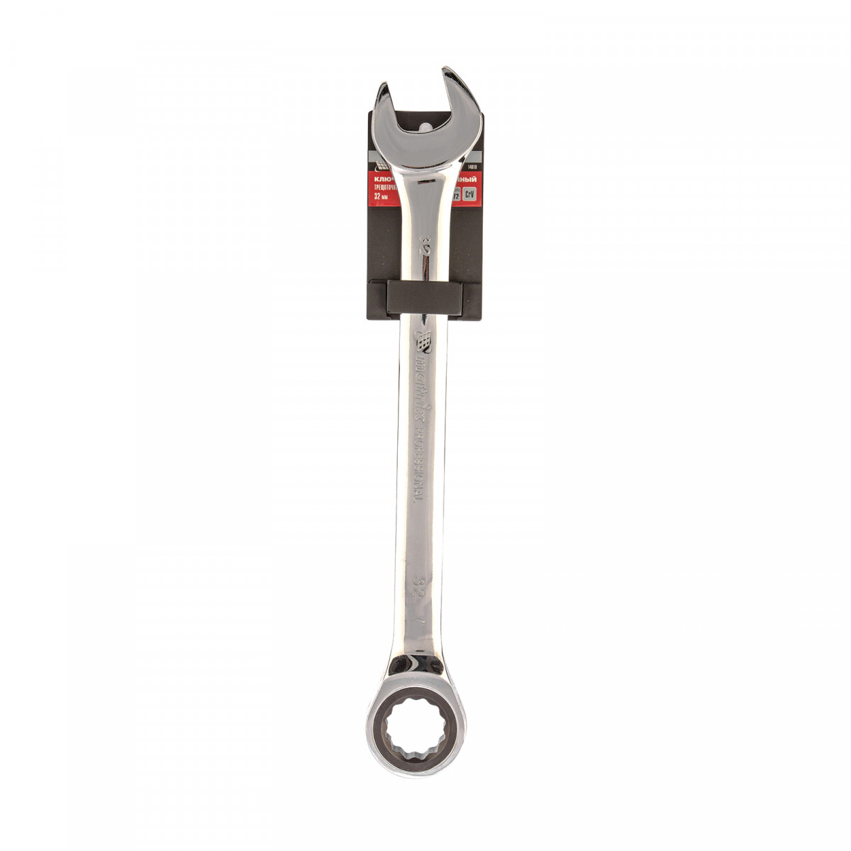 Ключ комбинированный трещоточный, 32 мм, CrV, зеркальный хром Matrix