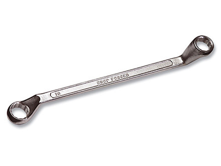Ключ накидной коленчатый, двухсторонний это сочетание на одной ручке двух головок для гаек или болтов размером 10 мм. и 11 мм. Накидной ключ, является наиболее распространенным и востребованным в промышленности, автомобилестроении и самолетостроении, а так же широко используется в быту и автомастерских. Накидной ключ позволяет обхватывать крепежный элемент (гайку, болт) по всей поверхности, что позволяет создавать большой крутящий момент. Данный ключ изготовлен из хромованадиевой стали, методом горячей ковки в соответствии с требованиями DIN 838. Покрытие САТИН.