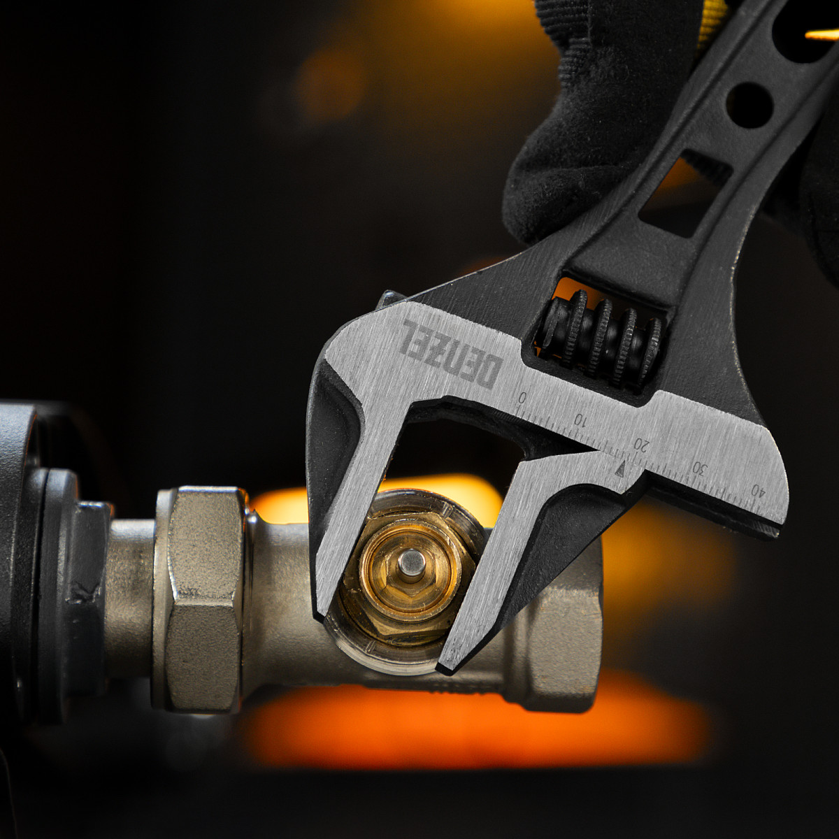 - Удобная эксплуатация — метрическая линейка на ключе помогает выставить нужный размах зева.