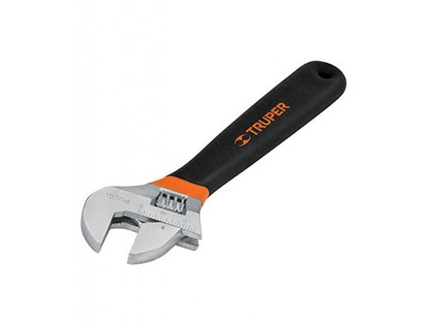 Разводной ключ Truper PET-12X 15512 используется при сантехнических работах. Головка изготовлена из кованой высокоуглеродистой стали. На ней нанесена измерительная шкала для точности настройки ключа.